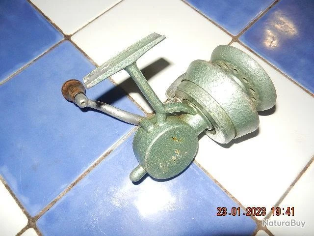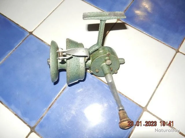 Ancien moulinet de pêche au saumon, de fabrication rustique et solide en fonte d’aluminium. Bon état apparent, fonctionne correctement, la vente s’adresse plus à un collecteur qu’à un pêcheur. L’étiquette de la marque en mauvais état s’est dégradée au cours du nettoyage.