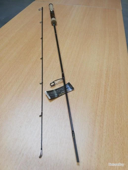Blank en carbone haut module. Anneaux FUJI® SIC KR concept. Porte-moulinet ergonomique en bois précieux avec bagues métalliques intégré à une poignée liège. Construction en 2 brins égaux avec emmanchement inversé. Petit pommeau de protection en EVA au talon. Livrée dans une housse tissu.